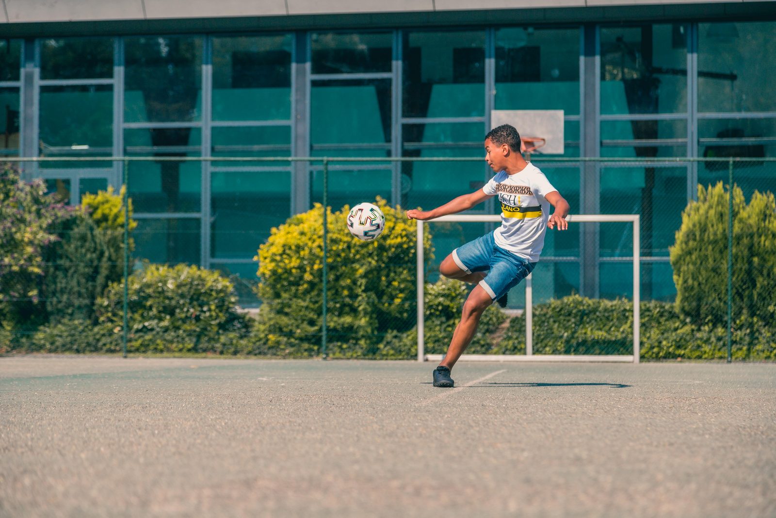 - Uitzicht op de speeltuin op de binnenplaats
